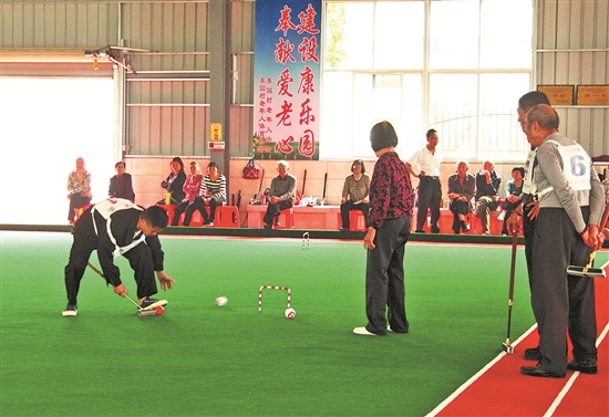 东园村老协会在老年健身康乐家园举行门球比赛活动