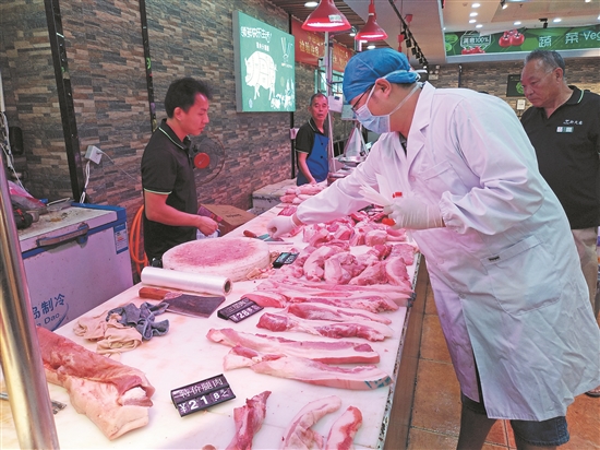工作人员提取农贸市场的案板表面标本进行监测 本报讯 (记者吴志勇 通讯员许怀硕 文/图)为持续做好全区新冠肺炎疫情防控工作,巩固防控成果,日前,泉州台商投资区民生保障局、市场监督管理局、疾病预防控制中心联合行动,对全区农贸(生鲜)市场、超市、冷冻食品店等海鲜肉类食品(含进口)经营场所进行外环境新冠病毒核酸监测工作。 本次监测重点采集市场、超市水产品和畜禽肉摊位上的案板表面、刀具、清洗池、活禽笼具、排污水等外环境标本及水产品、畜禽肉类等食品标本。据悉,此次监测覆盖了4个乡镇2个农贸(生鲜)市场、4家超市、8家冷冻食品店、30家生鲜肉类加工摊点,涉及3名重点疫区返乡务工人员和54名冻品经营人员,共对160份外环境标本进行新冠病毒核酸检测(合计57人、160份外环境),结果均为阴性。同时,对农贸(生鲜)市场开展环境消杀,消杀面积7670平方米。 |