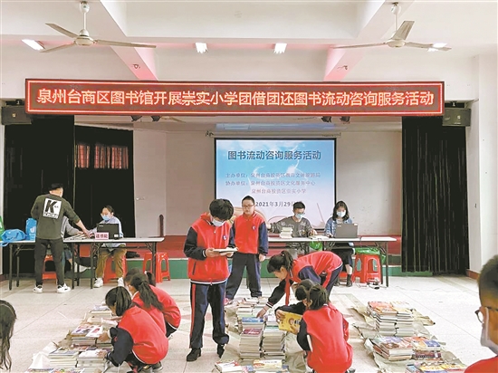 “团借团还”流动服务走进崇实小学 本报讯 (记者罗剑生 通讯员许琳 文/图)为进一步激发广大人民群众对美好生活的向往,营造全民阅读的良好氛围和社会风尚,提高群众的思想道德和科学文化素质,近日,泉州台商投资区图书馆图书流动服务活动分别走进崇实小学、第七幼儿园,为孩子们带去精神食粮。 在崇实小学,台商区图书馆的工作人员一走下图书流动服务车,就被学生们团团围住。在老师的陪同下,学生们有秩序挑选图书,并在工作人员的指引下有序进行借还。 在区第七幼儿园办理借书证的活动现场,区图书馆工作人员详细地向前来办借书证的家长们解答疑问,细心地教他们绑定借书证及续借。当天,来办理借书证的家长有近60人,大家有序排队等候办理,工作人员忙而不乱,认真做好各自手头上的工作。 |