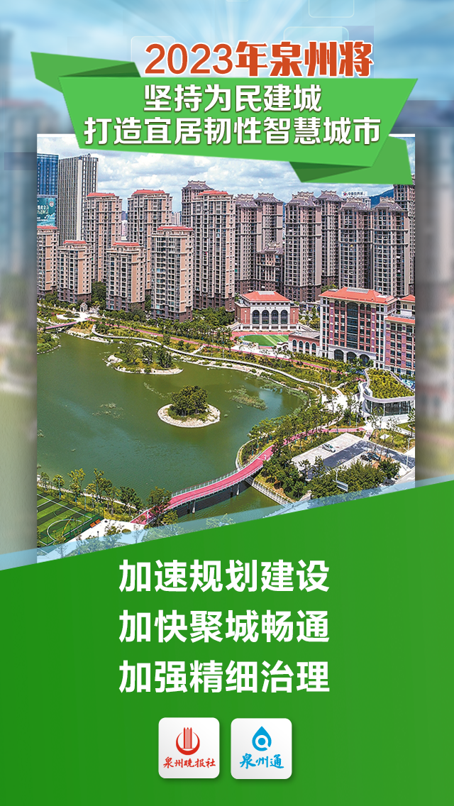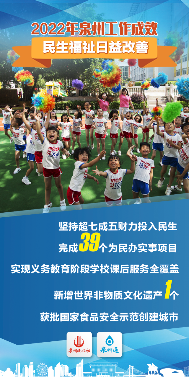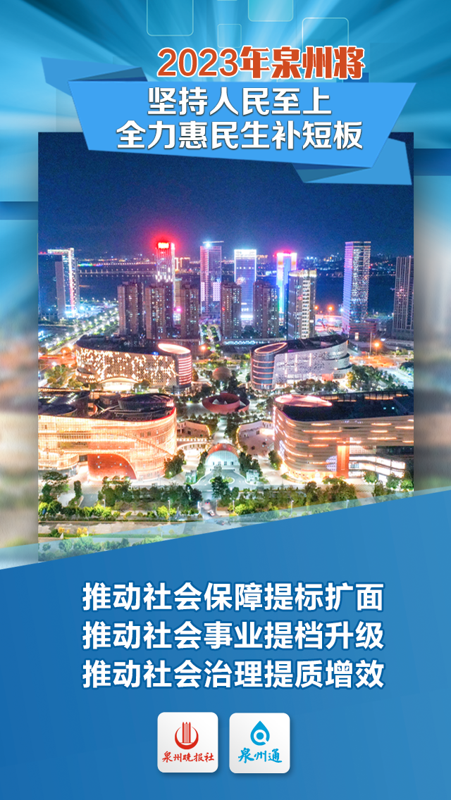 新增城镇就业8万人,新增“五险”参保18万人次。 新改扩建长者食堂等养老设施100个,新增养老床位超2000张、普惠性婴幼儿托位3000个。 新增公办幼儿园学位1万个、中小学学位3万个。 力争建成泉州技师学院,支持华侨大学建设省“双一流”高校、泉州师范学院建设一流应用型高校,支持泉州医高专、黎明职业大学争创本科层次院校。 建成投用市妇产医院、市正骨医院北峰院区,全市新增卫技人员4000人以上、医疗床位1500张以上。 新建成200个“党建+”邻里中心,打造15分钟便民服务圈。 奋斗创造奇迹 实干成就未来 踔厉奋发、勇毅前行 全市上下将奋力谱写 全面建设社会主义现代化国家泉州篇章! |