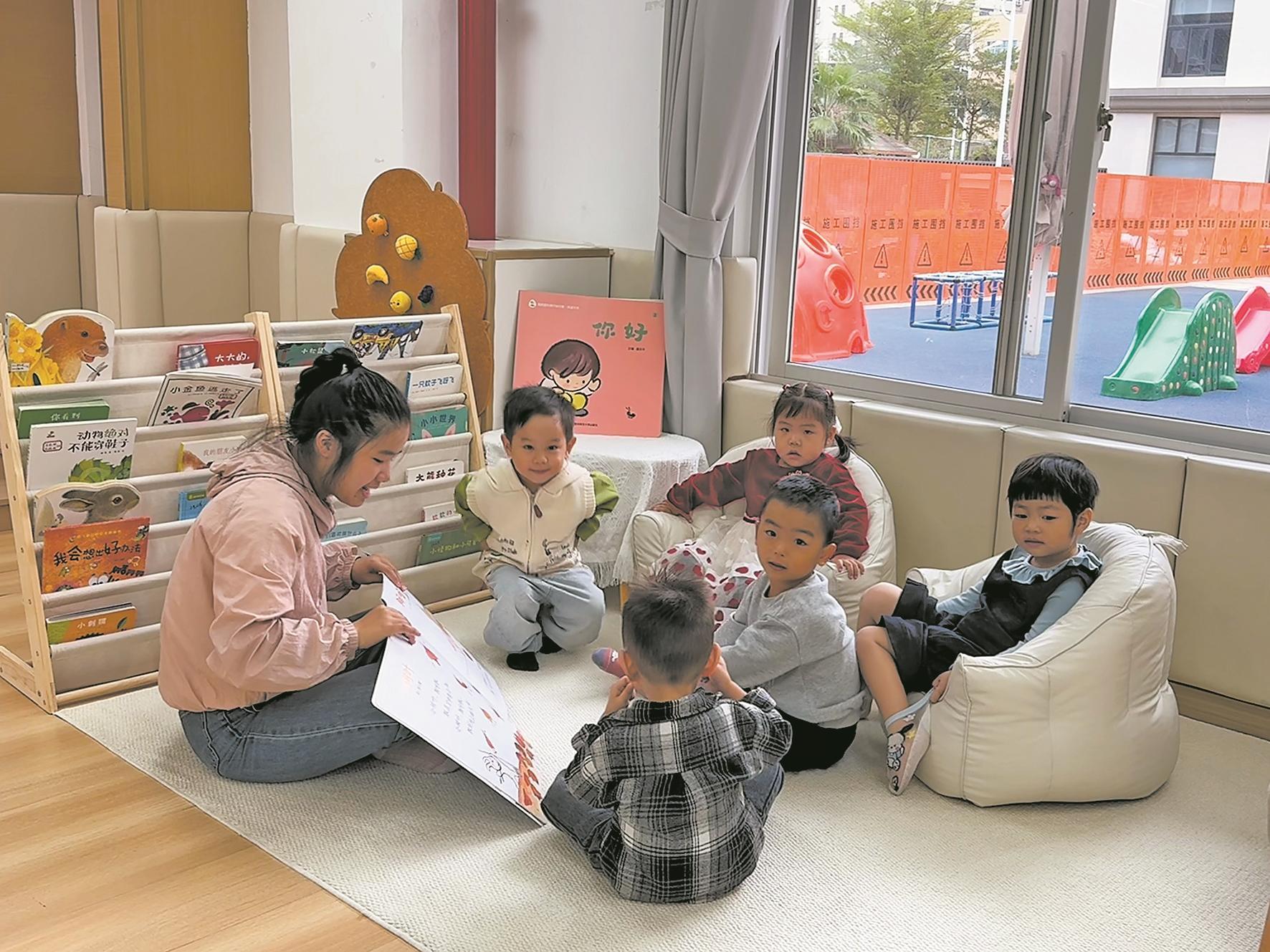 近日,记者来到台商区第一民族幼儿园时,托育班孩子们正在老师的陪伴下愉快玩耍,教室环境干净温馨。“这是我们今年9月刚刚开设的托育班,目前共有19名2—3岁的幼儿。今年暑假前,我们已经完成了托育班的硬件基础设施建设。明年还计划在现有基础上增设1个托育班。”副园长郭少健介绍,该园在区民生保障局、区教育文体旅游局的指导下,与百崎乡里春村“党建+”邻里中心签约建设托育点,实现托幼一体化,生源主要覆盖整个百崎乡。“家长接送孩子全程可在15分钟内完成,真正实现了‘15分钟托育服务圈’。”
