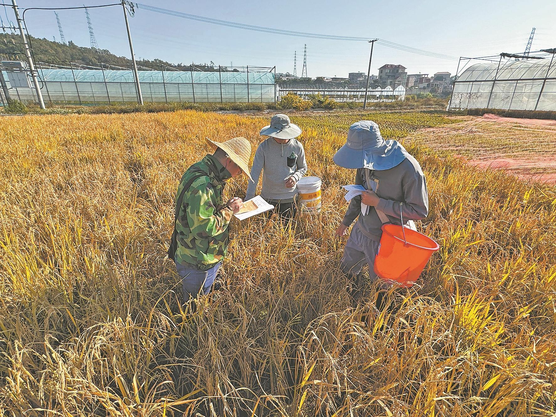 在泉州国家农业科技园区内,冬日仍见稻穗垂金,几名农科所工作人员正在田地里收种,为下一季播种做准备。“眼前尚未收割的稻田,是我们人为推迟播种的试验材料,目的是使其抽穗—灌浆期后移,让稻穗错过当地的高温时段,以提高结实率。”福建省水稻产业体系泉州试验站站长陈锦文指着稻田介绍,该稻田是他们从福建省水稻产业体系的各个单位中征集到的大量两系不育系水稻种质资源,每一小块区域都是不同的水稻品种。