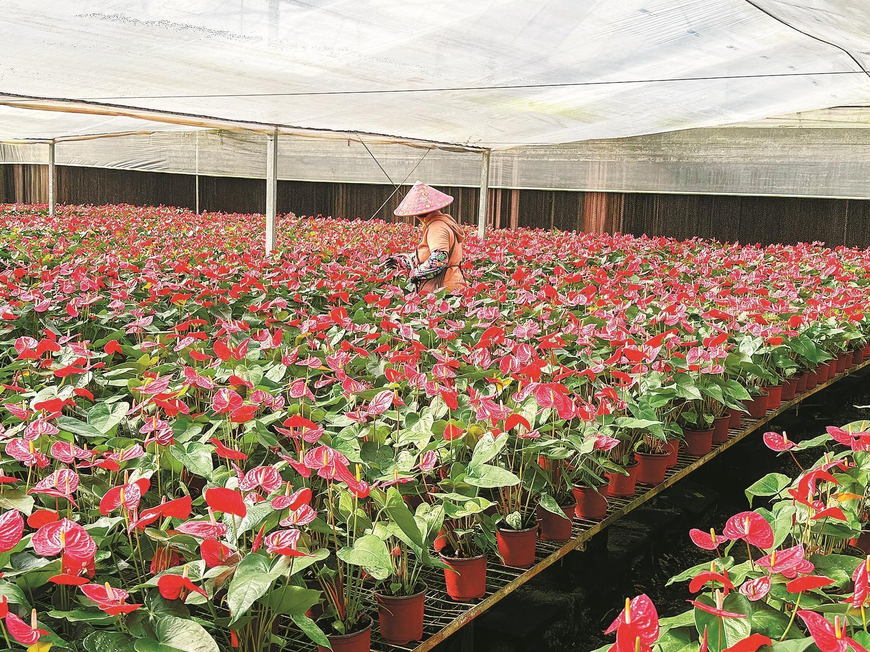 与此同时,市级农业产业化重点龙头企业泉州丰泉农业发展有限公司则专注于红掌等名贵花卉的规模化生产。公司通过“基地+农户”模式,辐射带动周边农户,形成优势花卉产业集群,实现红掌标准化、集约化、规模化生产,年产出红掌盆花数量位居全省前列,产品不仅畅销国内,更成功打入欧洲市场。