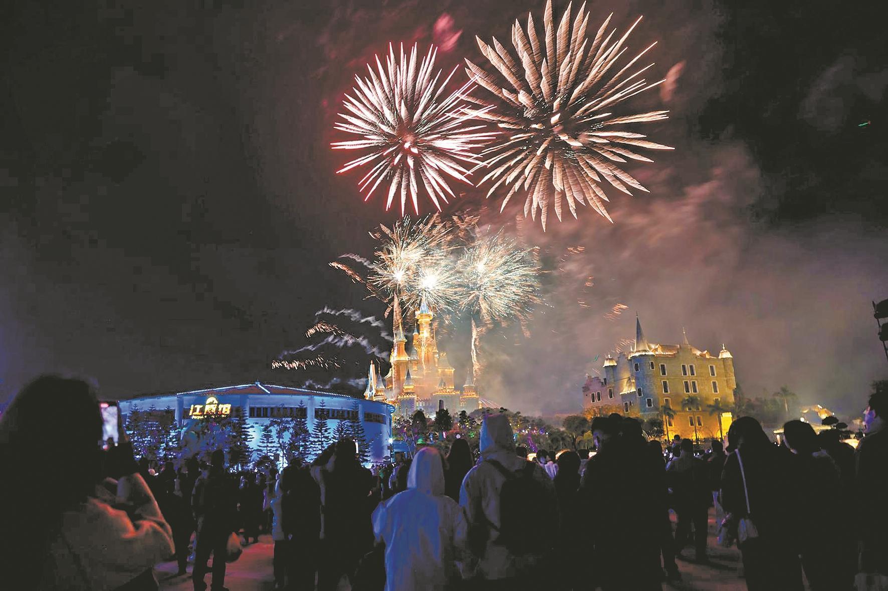 元旦假期,园区持续呈现“冰雪童话奇遇,城堡烟花盛宴”主题夜游。白天,冰雪花车巡游穿梭,银装素裹的童话场景引得孩童欢呼;夜晚,城堡幻影烟花与灯光秀交相辉映,光影璀璨如梦,成为家庭打卡热点。同期推出的“四大秘境·漫游北欧极地奇境”活动,还原极光、雪屋、驯鹿驿站等场景,结合互动体验,带领游客“穿越”至北极,感受静谧神秘的极地风光。