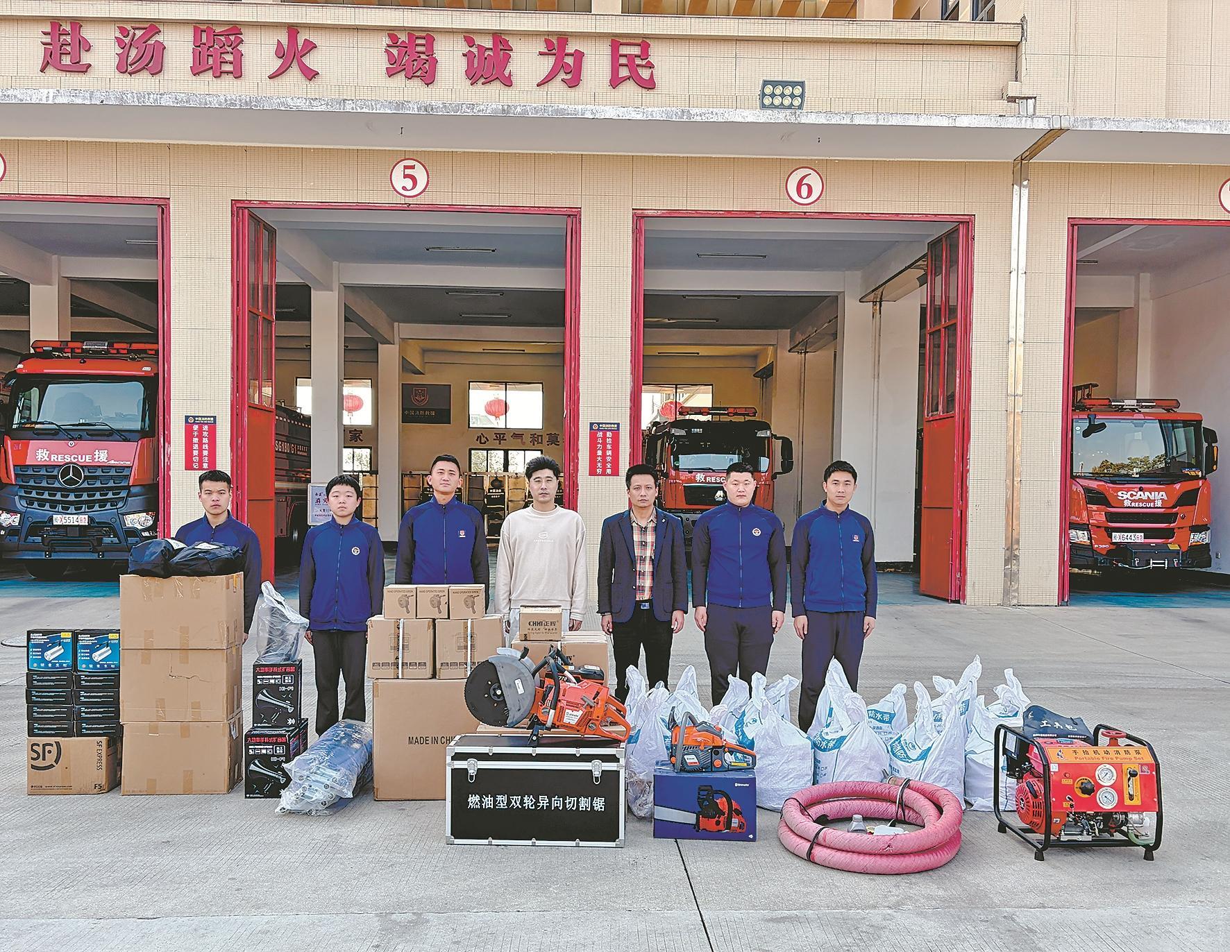 本报讯 (融媒体记者罗剑生 通讯员章志强 文/图)为提升实战救援能力,近日,泉州台商投资区综合执法与应急管理局向区消防救援大队集中调拨绳索救援套装、手持防爆灯、手抬机动消防泵、切割机套装等11类共90件专业救援器材,涵盖破拆、照明、供水、通信、防护、转运等关键环节。