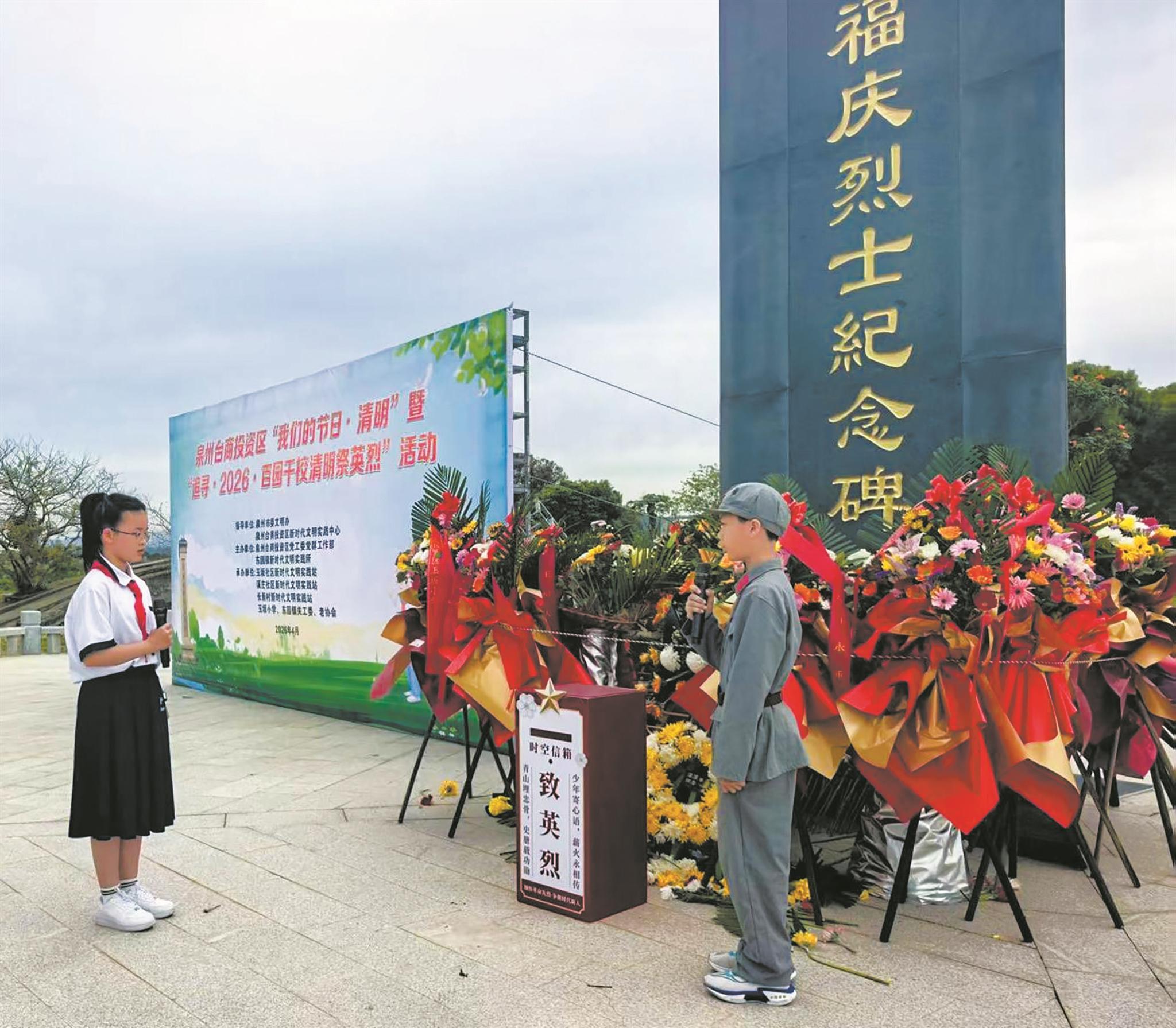 本报讯 (融媒体记者罗剑生 通讯员陈诗滢 文/图)为深切缅怀革命先烈的丰功伟绩,传承红色基因,近日,泉州台商投资区“我们的节日·清明”主题活动暨“追寻·2026·百园千校清明祭英烈”主题活动在东园镇王福庆烈士纪念碑举行。
