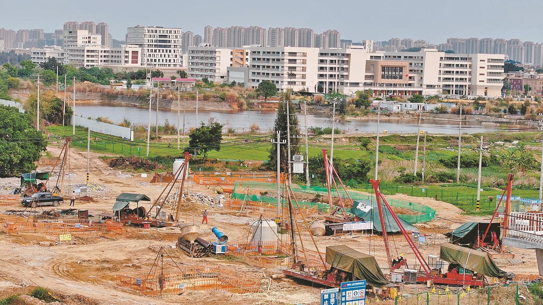 “江城大道一期线路总长度700米,包括一座主线桥。目前,我们已经进场钻机6台,正在进行钻孔灌注桩。”江城大道(滨湖西路—湖山路)市政工程施工单位项目负责人陈秋波介绍。
